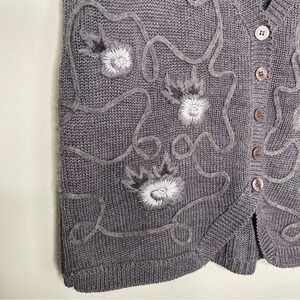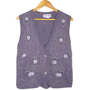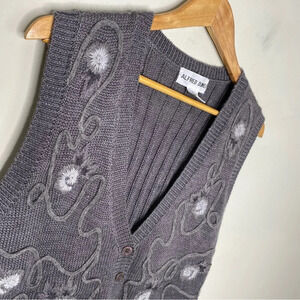 Alfred Dunner Vintage Gray Wool Blend Floral Embroidered Knit Sweater Vest Small