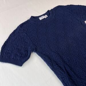 Alfred Dunner Vintage Navy Blue Short Sleeve Sweater Women's Size Medium Petite
