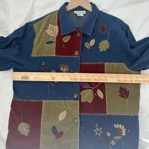 Alfred Dunner Vintage Patchwork Denim Button Up Autumn Leaf Shirt Size 10P/M