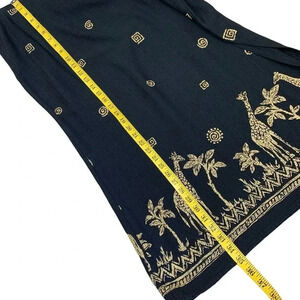 Alfred Dunner Vintage Pull On Maxi Pencil Skirt Size 16 Black Gold Safari Print