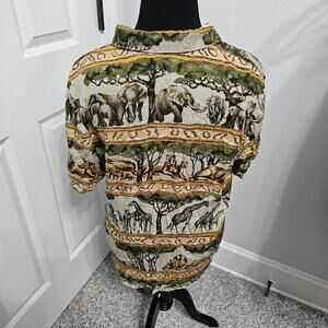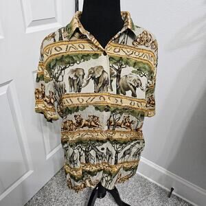Alfred Dunner Vintage Safari Animal Print Tiger Zebra Elephant Button Up