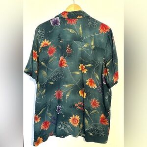 Alfred Dunner Vintage Shirt Sz 14 Floral Green and Orange Casual Button Down