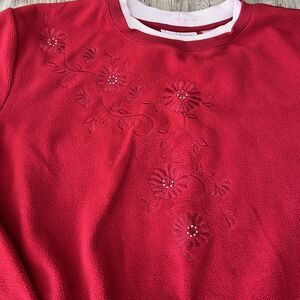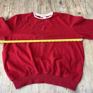 Alfred Dunner Vintage Sweatshirt Women's Small Red Floral 90s Granny Grandma — Bring back 90s charm with this adorable Alfred Dunner vintage sweatshirt! In a vibrant red hue with delicate floral embroidery, this women’s small pullover embodies cozy grandma-core vibes. Soft, comfy, and full of nostalgic charm, it’s the perfect piece for anyone who loves timeless vintage style. Fleece