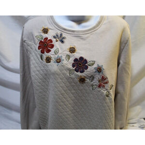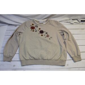 Alfred Dunner Vtg Women's (PL) Petite Beige Embroidered Beaded Floral Sweatshirt