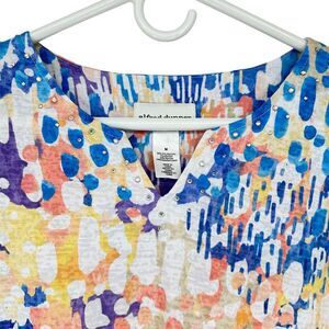 Alfred Dunner Watercolor Abstract Print Beaded V-Neck 3/4 Sleeve Top Medium