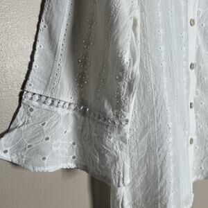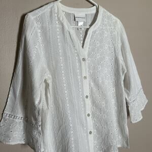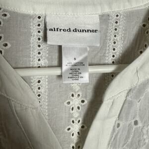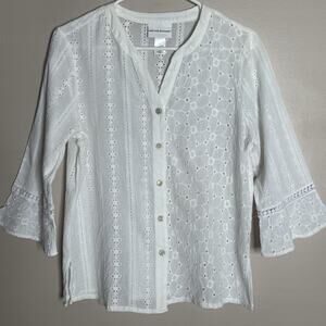Alfred Dunner White Eyelet Embroidered V-Neck 3/4 Sleeve Blouse, Small-Gorgeous