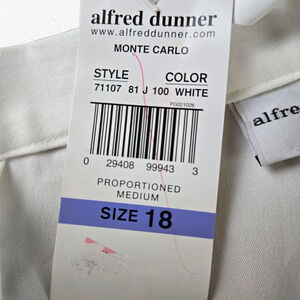 Alfred Dunner White Monte Carlo Classic Stretch Minimal Straight Pants Size 18