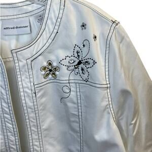 Alfred Dunner, White Open Front Jacket, Black Stitching Butterfly, 14