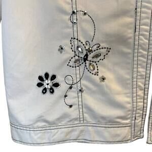 Details: Celebrate a classic look in this beautiful Alfred Dunner White Open Front Jacket with Black stitching and Butterfly Accents. The jacket features an open-front silhouette along with black stitching throughout, creating a timeless aesthetic. This chic and stylish coat is effortlessly wearable and features butterfly accents that add a touch of elegance to the overall look. Perfect for a night out on the town, you’ll be sure to turn heads in this luxurious piece. Crafted with an eye for detail and fine stitching, this Alfred Dunner Jacket will be your go-to style piece!