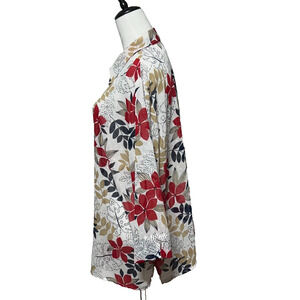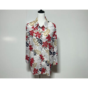 Alfred Dunner White Red Floral Swiss Dot Top 16W Semi Sheer Button Up Career