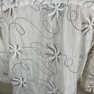 Alfred Dunner White V-Neck Button Down Blouse Sequin Floral Size 16P