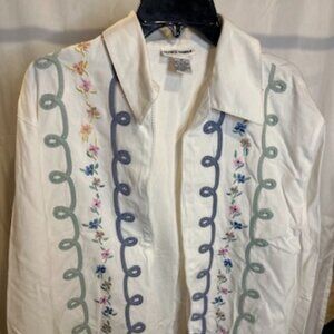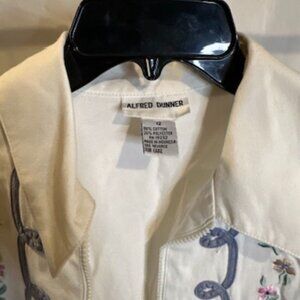 Alfred Dunner White Zip-Up Jacket with Embroidered Floral Detail – Size 12