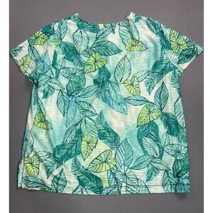 Alfred Dunner Woman 1X Top Green Leaf Print Embellished V Neck Short Sleeve