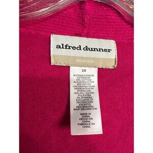 Vibrant and stylish, this Alfred Dunner faux twin set combines comfort with elegance. Ideal for casual outings or semi-formal events, it features a striking pattern and a relaxed fit.