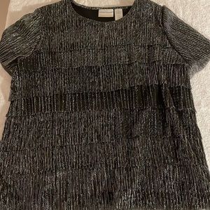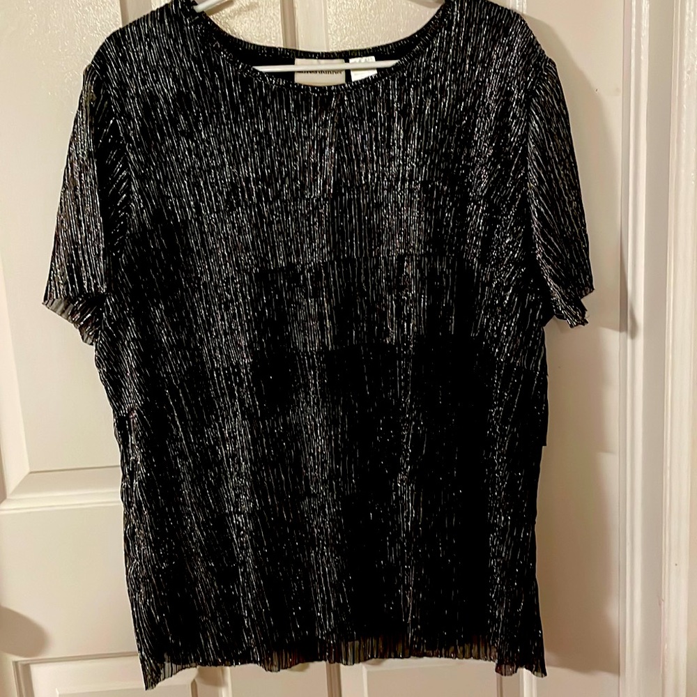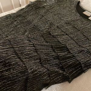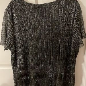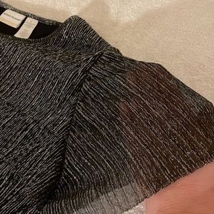 Black and silver crinkle tier blouse. Great under a jacket or by itself. Light weight. Sleeves are sheer.