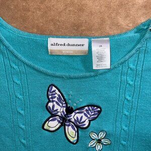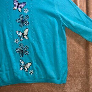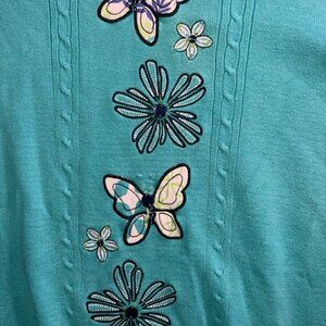 Alfred Dunner Women 2XL Teal Long Sleeve Beads Embroidery Butterfly Sweater (U)