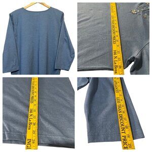 Alfred Dunner Women Blue Embellished Sequin Neckline 3/4 Sleeve Top L Popover