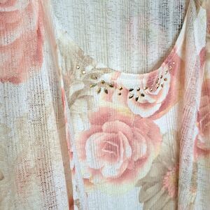 Alfred Dunner Women Combo Top Cardigan With Tank Floral Roses Size Plus 2X