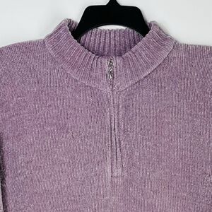 Alfred Dunner Women Large Lavender 1/4 Zip Knit Sweater Mock Neck Casual Office