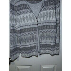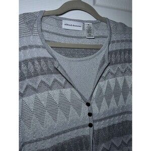 Alfred Dunner Women Long Sleeve Three Button Silver Glitter Sweater Size Medium