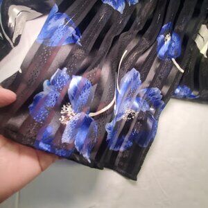 Alfred Dunner Women Plus Size 16 Top Long Sleeve Black Blue Sheer Vintage 1990s