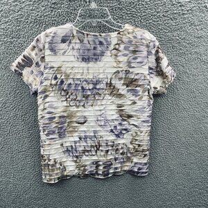 Alfred Dunner Women Top Small Petite White Purple Floral Ruffle Pullover Shirt