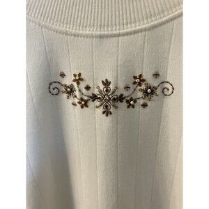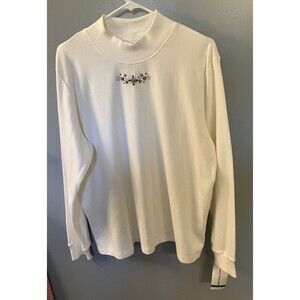 Alfred Dunner Women White Embroidered Long Sleeve Mock Turtleneck Large NWT