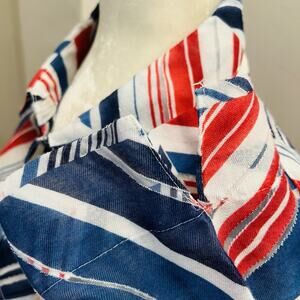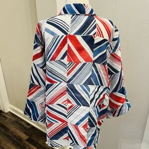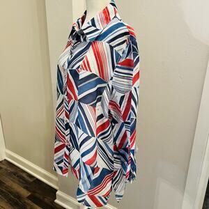 Alfred Dunner Women’s 18 Button Blouse Shirt Red White Blue Geometric (A0125)