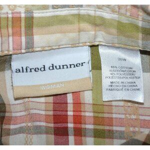 Alfred Dunner Women's 20W Fall Tan Plaid Floral Embroidered Button Front Shirt