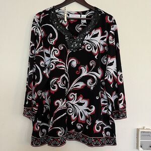 Alfred Dunner Women's 3/4 Sleeve Embellished Stretch Sequin Tunic Top SZ 3X