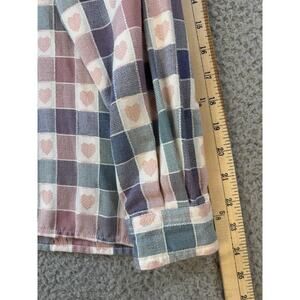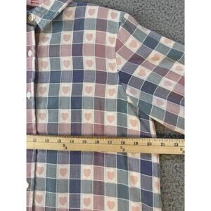 Alfred Dunner Womens 8 Petite Button Shirt Pastel Heart Check Pattern