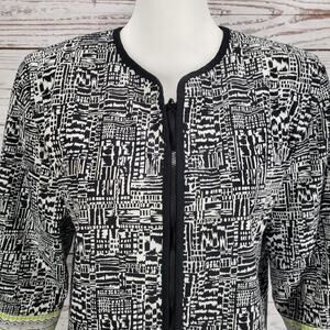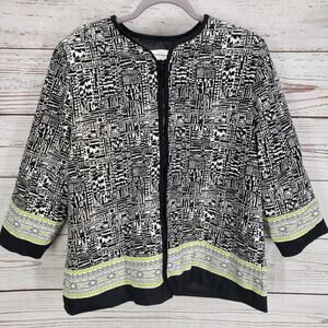Alfred Dunner Women's Black Mixed Print Full Zip Line Blazer Jacket Size 14