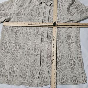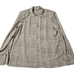 Alfred Dunner women's size 12 blouse in a vibrant multicolor animal print. This basic style, button-down blouse is made from 100% polyester, ensuring comfort and durability.