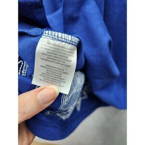 Alfred Dunner Womens Blue Tropical Print Cotton Blend Short Sleeve Top Size M