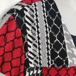 Alfred Dunner Womens Cardigan Size Small Built In Tank Patchwork 3/4 Sleeve Red