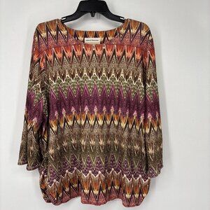 Alfred Dunner Women's Chevron Textured Crew Neck Top Multicolor Size 2X NWT