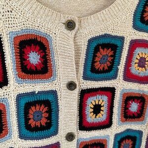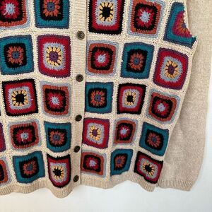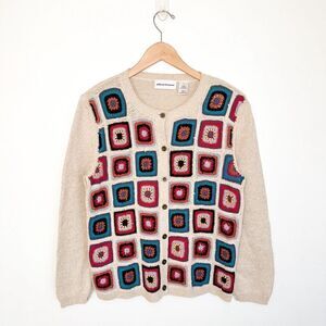 Alfred Dunner Women’s Coastal Grandma Crochet Square Multicolored Button Front Cardigan Sweater