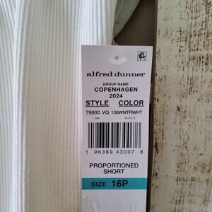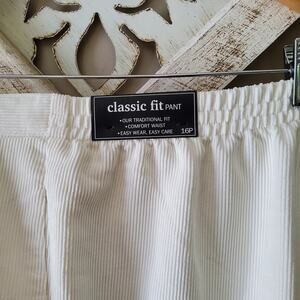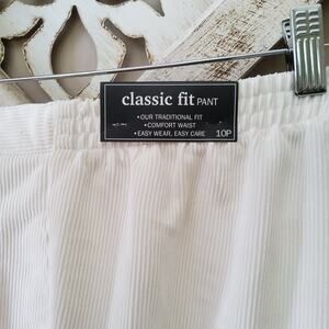 White Copenhagen corduroy elastic waist pullon pants by Alfred Dunner in 10 petite, 16 petite, and 18.