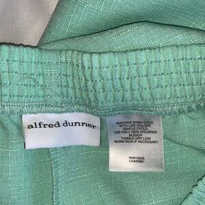 These Alfred Dunner aqua pants offer a stylish and comfortable wardrobe essential. Designed with a flattering elastic waistband and textured fabric for versatile wear.