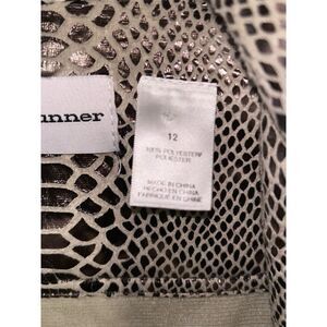 Alfred Dunner Women's Basic Jacket, Size 12. Made from 100% polyester with an animal print pattern in gray. Features button closure, buttoned cuffs, and two front chest pockets. Machine washable. Pre-owned.