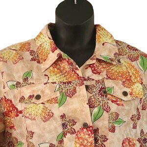 Alfred Dunner jacket, petite floral jacket, butterfly print coat, lightweight layering jacket, stylish spring jacket, women’s button-front coat, floral fashion outerwear, casual petite coat, versatile Alfred Dunner blazer, long sleeve snap button jacket, breathable casual jacket, elegant floral outerwear, structured casual wear, feminine fashion jacket, spring wardrobe essential, relaxed fit floral coat.