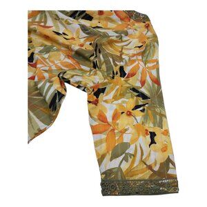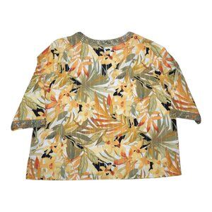 Alfred Dunner Womens Floral Top 22W Cotton Blend 3/4 Sleeve Tropical Leaf Print