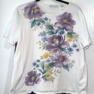Alfred Dunner Womens Floral Top & Corduroy Pants Set L/16 White & Purple