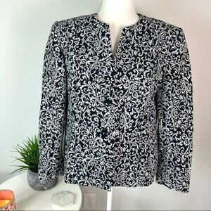 Alfred Dunner Womens Jacket Coat Metallic Black Floral Buttons Petites 12P