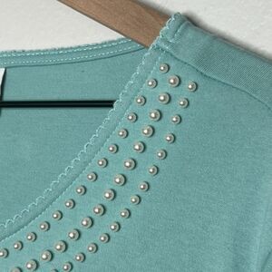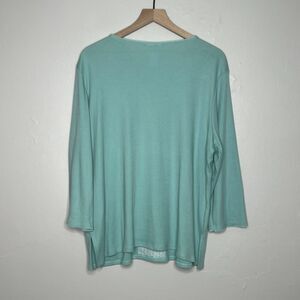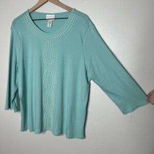 Alfred Dunner Womens Knit Top 1X Aqua Blue Pearl Twist 3/4 Sleeve Easter Office