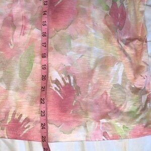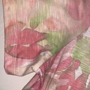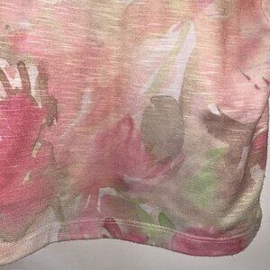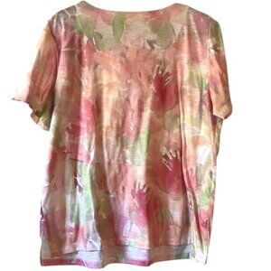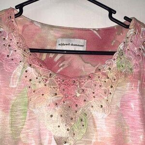 Alfred Dunner Womens L Pink & Green Floral Beaded Top With Lace Neckline