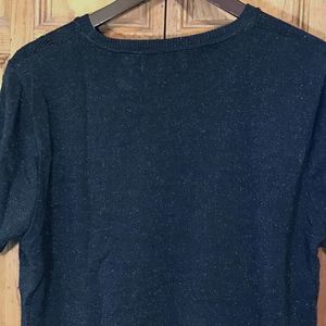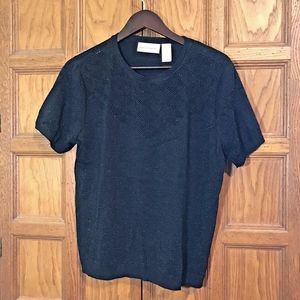 Alfred Dunner Women's size Large, Black Diamond Knit Sweater. Short Sleeve Pullover, Sparkly Top.