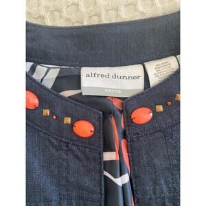 Alfred Dunner Womens Lightweight Dark Denim 3/4 Sleeve Beaded Open Jacket Sz 10P