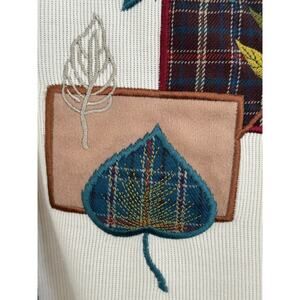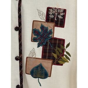 Alfred Dunner Women’s Size Medium Knit Ribbed Cardigan Plaid Trim Embroidered Appliqué Patches Grandmacore Cottagecore
