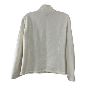 Alfred Dunner Women’s Medium Petite White Fleece Jacket Embroidered Zip Front 100% Polyester Early 2000s